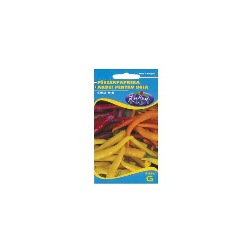 Hot peppers suitable for outdoor cultivation. Its pendulous fruits ripen from dark green to lemon yellow, orange or red. The flavour is very pungent. The seeds of the three varieties in the bag are banded according to the colour of the fruit.