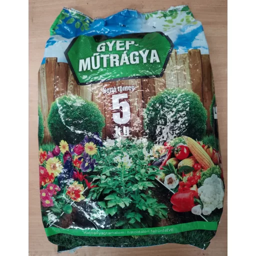 Lawn Fertilizer is sold in a practical 5 kg package for home use.