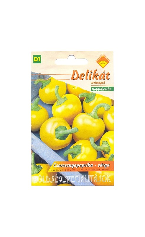 A yellow-orange-coloured, small-growing cherry pepper variety. It has a pungent flavour, medium growth and is a prolific variety. Because of its interesting colour (together with red varieties) it can be used dried and pickled.