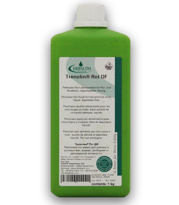 Liquid colour releasing pectinase for red mash. Deoxidase-free, liquid, pectolytic enzyme preparation for the production of red and rosé wine. Short description of the product Trenolin Rot DF is a gentle, pectolytic enzyme for the treatment of red mash....