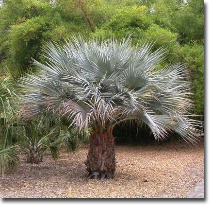 Commonly known as Brahea armata, Mexican Blue Palm, Blue Hesper Palm, Gray Goddess,
