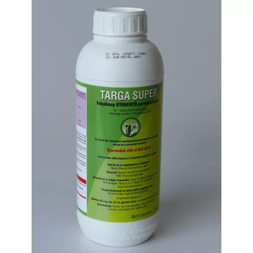 Targa Super can usually be mixed with herbicides for control of dicotyledonous weeds. It is not miscible with phenoxy herbicides such as 2,4 D, MCPA, etc. In all cases, a field mixing test is recommended. The spray must be applied immediately after mixing and within 12 hours at the latest. Do not use fertiliser in the Targa Superrel tank mix.