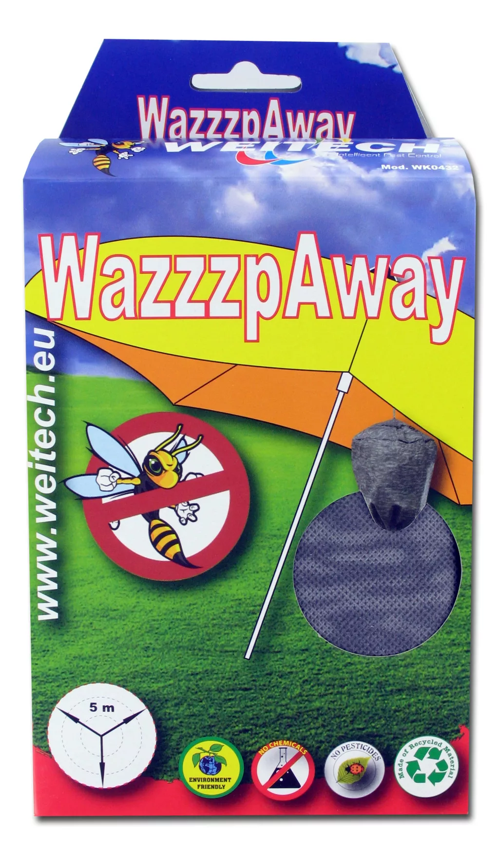 The product mimics a hostile wasp nest, keeping wasps away from the area to be protected.
