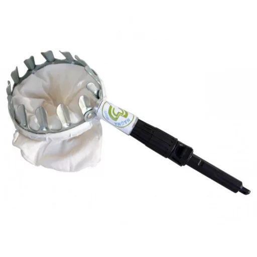 Practical fruit picker, with picking bag. Includes handle adjustable between 1,1 and 2,4 m.
