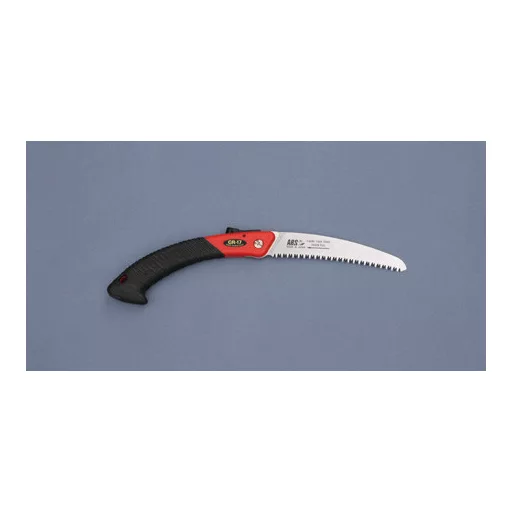 Universal folding saw with safety lock, rubberised handle, curved blade.