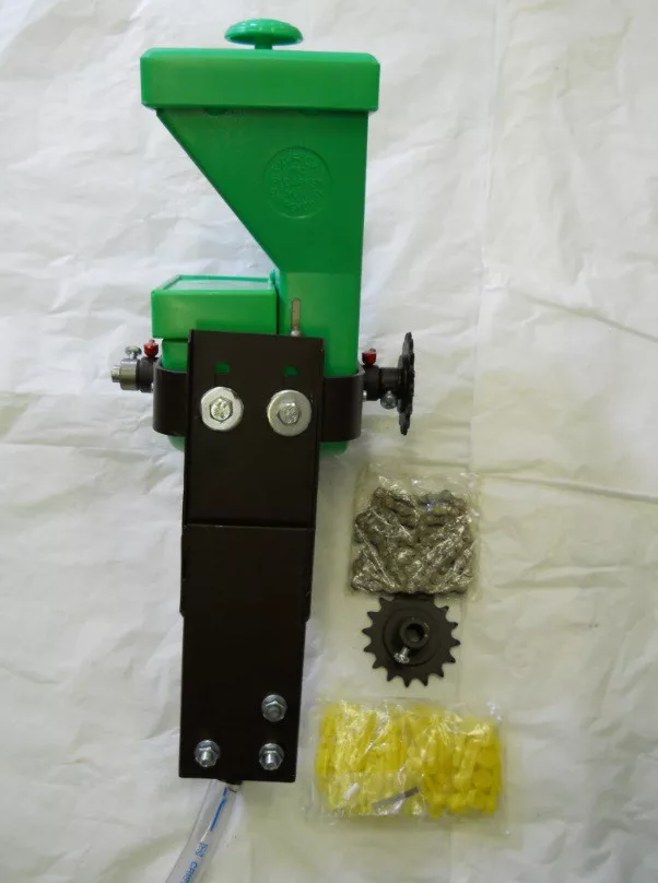 The level of seed "flowing" from the seed hopper section into the seed tray also affects the quality of the seed. Inside the hopper there is an aluminium seed level regulator ( slider ), which can be moved up and down to control the amount of seed flowing through. By correctly adjusting the level of this whisk, you can ensure that only the head of the spoon is immersed in the seed, and no longer the stem. If the spoon stem is also submerged, it can take up several grains in the ejection position.