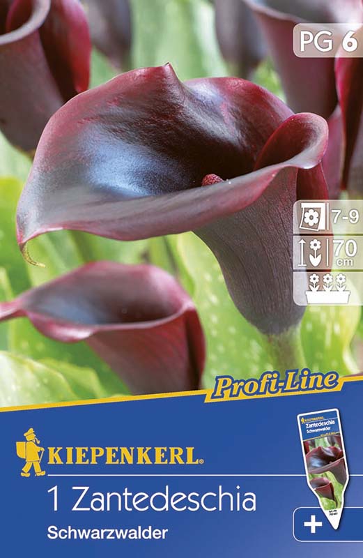 Exotic, thanks to new nodes of the formerly very popular white-flowered room Callas (Zantedeschia), also known as Aronkelch will be attractive outdoor plants for completely new purposes. A promising new addition is the Kiepenkerl Pflanzenzüchtung variety 'Schwarzwalder'. It impresses with i...
