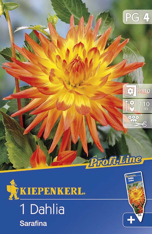Literally bright, semi-cactus dahlia with yellow flowers and pink tips.