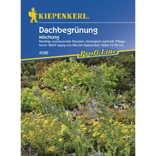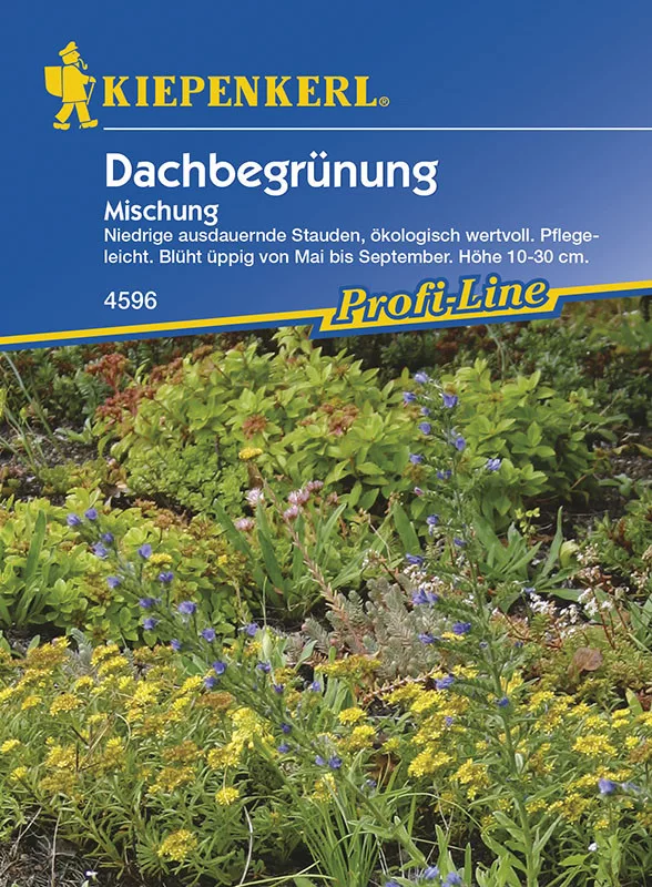 Seed mix of low-growing (10-30 cm), hardy and easy to manage annuals and perennials. A green roof is not only an ecologically valuable habitat, but also an extra garden area. It is a profoundly flowering plant cover that provides excellent thermal insulation in winter and summer, thus saving energy. It is drought-tolerant, creating a richly flowering field all summer long. Their leaf structure, root system and resistance to heat, drought and extreme weather conditions make them well tolerant. The plants' root network retains and stores water. The plants, which are also found in a variety of crow flies and pastures, are a favourite food source for butterflies, bees, bumblebees and other beneficial insects. It is recommended for sunny to semi-shady roof gardens, under trees only if a dry period is provided, as the plants need it. Sow scattered, thinly covered with soil or worked shallowly into the soil and thinned if the crop is too dense. It can be grown well in a propagator.