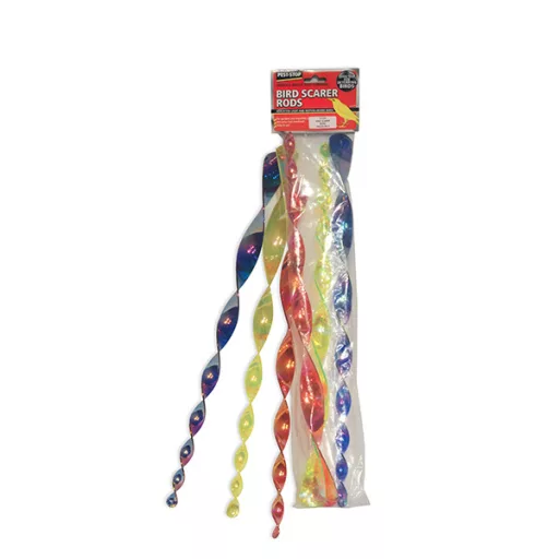 The package contains 3 different coloured rods that will scare away birds with their rotating movement and shimmering when the wind blows.