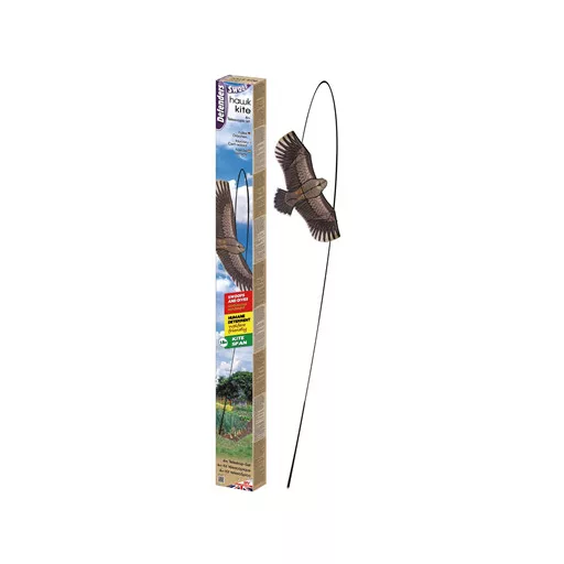 The Hawk Kite set consists of a kite with a hawk pattern suspended from a 4m high telescopic pole.