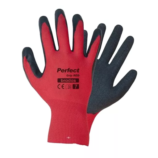 Perfect Grip Red Latex, protective gloves made of polyester material with latex coating. Gloves with a tough construction and high cut and tear resistance.