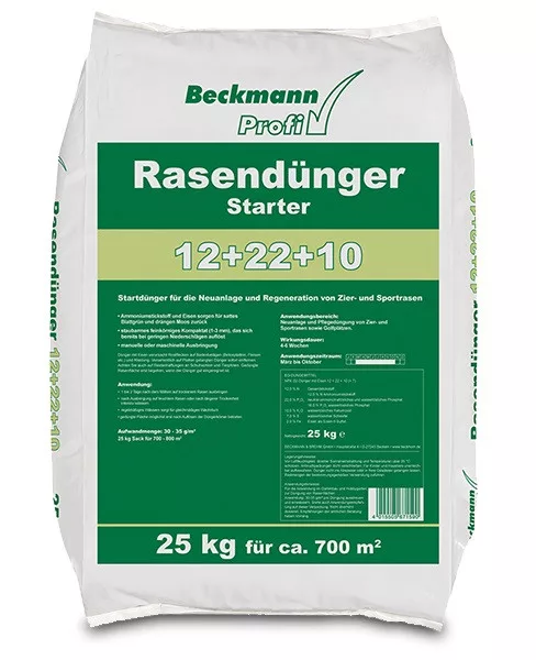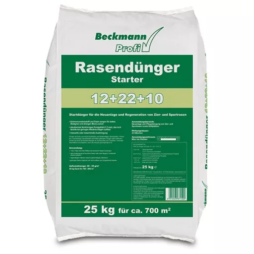 Beckmann lawn fertilizer for grass seed sowing, lawn turf planting 12-22-10 25kg
