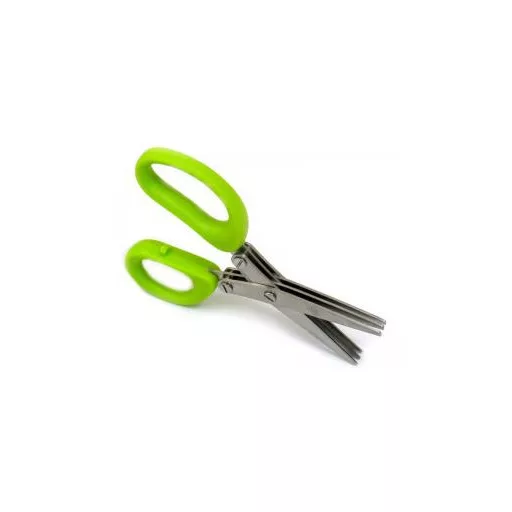 10 steel blade scissors + plastic comb Class 1 product. Supplied with 5 steel blades per side Rubberised green plastic handle Dimensions: Length: 22cm Length of blade: 11.5cm