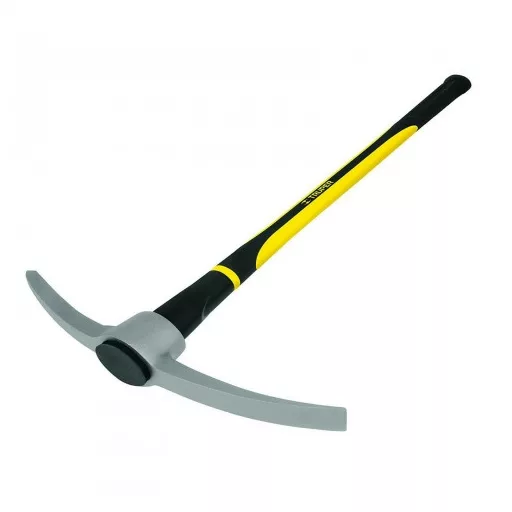 Railway pickaxe with professional fibreglass handle, handle colour lemon yellow. Ergonomic handle, easy to clean, heavy duty. 2,26 kg Handle length: 91 cm