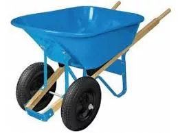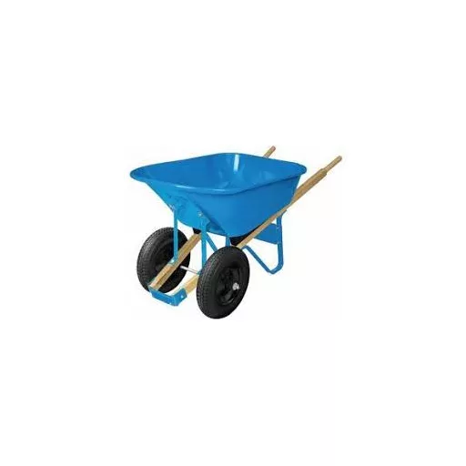 Two-wheeled wooden wheelbarrow with 100 litres of bag.