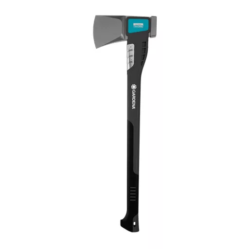 More efficient log splitting axe for splitting larger logs. The axe head is coated with a non-stick coating to reduce friction and allow the axe to penetrate the wood more easily. The geometry of the head is adapted to the workflow for splitting larger logs. Stainless steel protection ensures a long handle life.The centre of gravity close to the axe head provides perfect balance and weight distribution. The combination of an optimised axe head and lightweight handle concentrates the force in the cut, making it even easier to split logs. The hammer function makes wedges more efficient to drive in (do not use for steel wedges).GARDENA guarantees a 10-year warranty on this axe.
