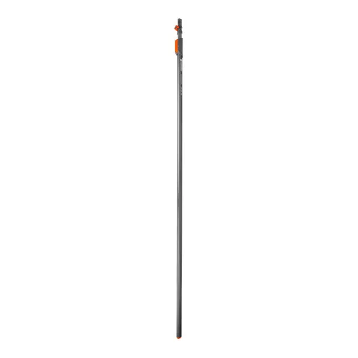 With the GARDENA combisystem Telescopic Handle, you can work comfortably up to a height of 6 metres. The Telescopic Handle with snap lock can be easily extended in 26 cm increments from 210 to 390 cm. This makes it fully adaptable to work and body height. The handle is made of aluminium and is particularly light and stable. These features are particularly important when the handle has to be held upwards. The handle has an oval shape to prevent accidental movement during extension and to ensure greater stability. The stop prevents the handle from unexpectedly collapsing (no damage). The locking screw, made of soft plastic elements, is mounted in such a way that it cannot be lost. 25-year warranty.