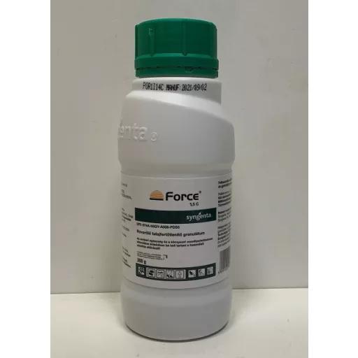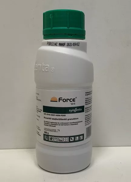 A Force 1,5 G bemutatása: Házikerti felhasználás: 10 g/m2. Hatóanyag tipusa: Piretroid tipusú rovarölő talafertőtlenítő granulátum Hatóanyaga: 15 g/kg teflutrin Felhasználható: Felhasználási javaslat: Hogyan juttasuk ki? A készítményt sorkezelés formájáb...