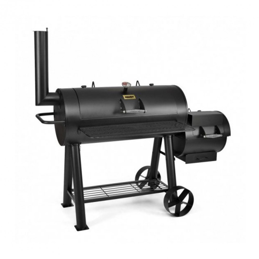 Two fireboxes, three modes of use, thermometer, large storage shelf.
