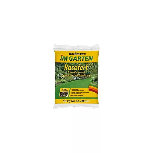 Beckmann Rasofert® long-acting organic mineral fertiliser NPK 12+3+5 + 45 % organic matter content with 3 % magnesium - Healthy, dense lawns crowd out weeds and moss! - Optimum combination of natural and mineral nutrients - Long-lasting, even action - Eas...