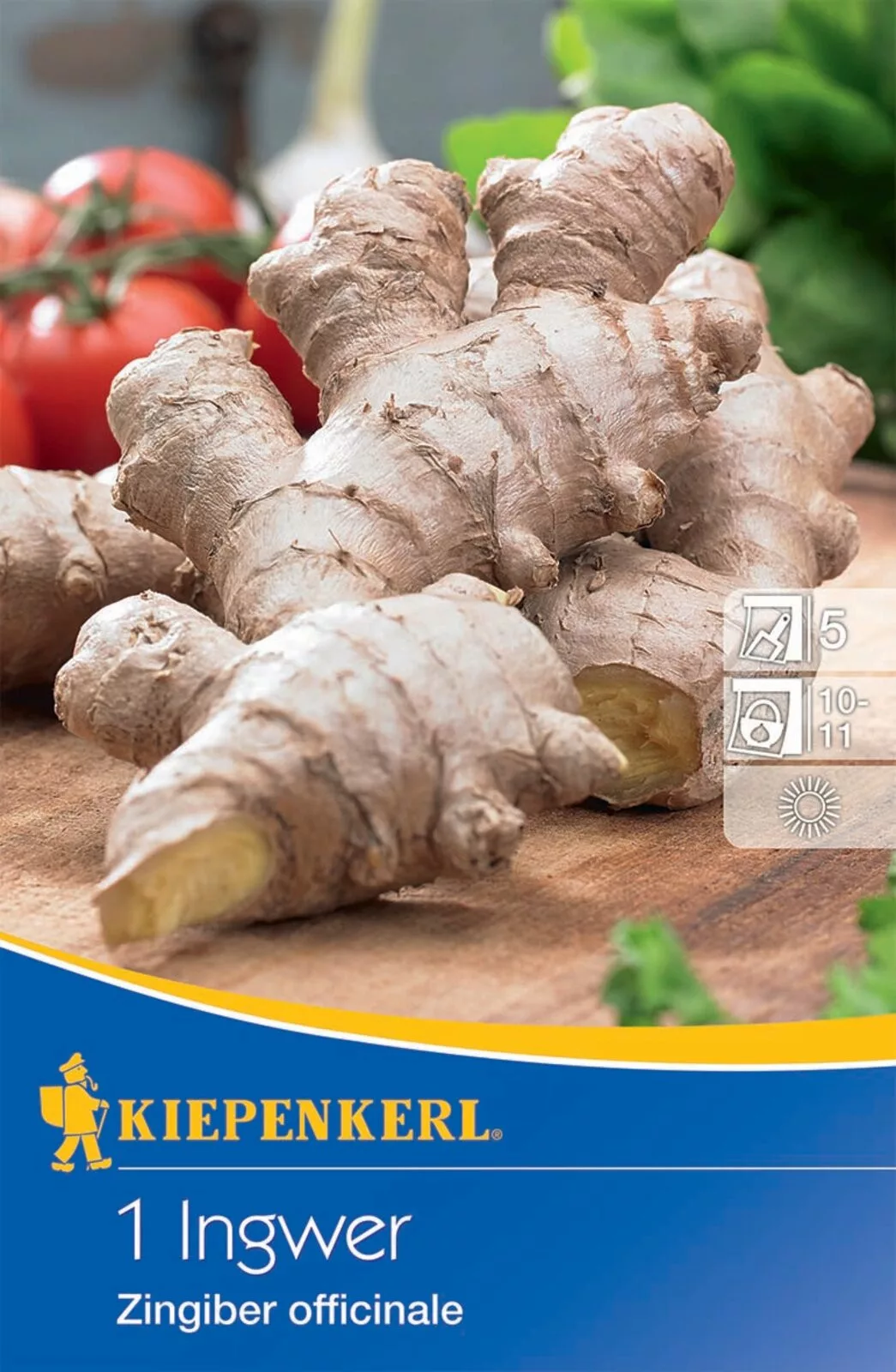 Ginger is an edible tropical plant with a pungent aromatic rhizome. The tuber can be used for cooking, raw consumption or as a beverage extract. The plant can reach a height of up to 1.5 m, resembles a grass or reed, fernIt produces yellow-red flowers on stems growing directly from the ground.
