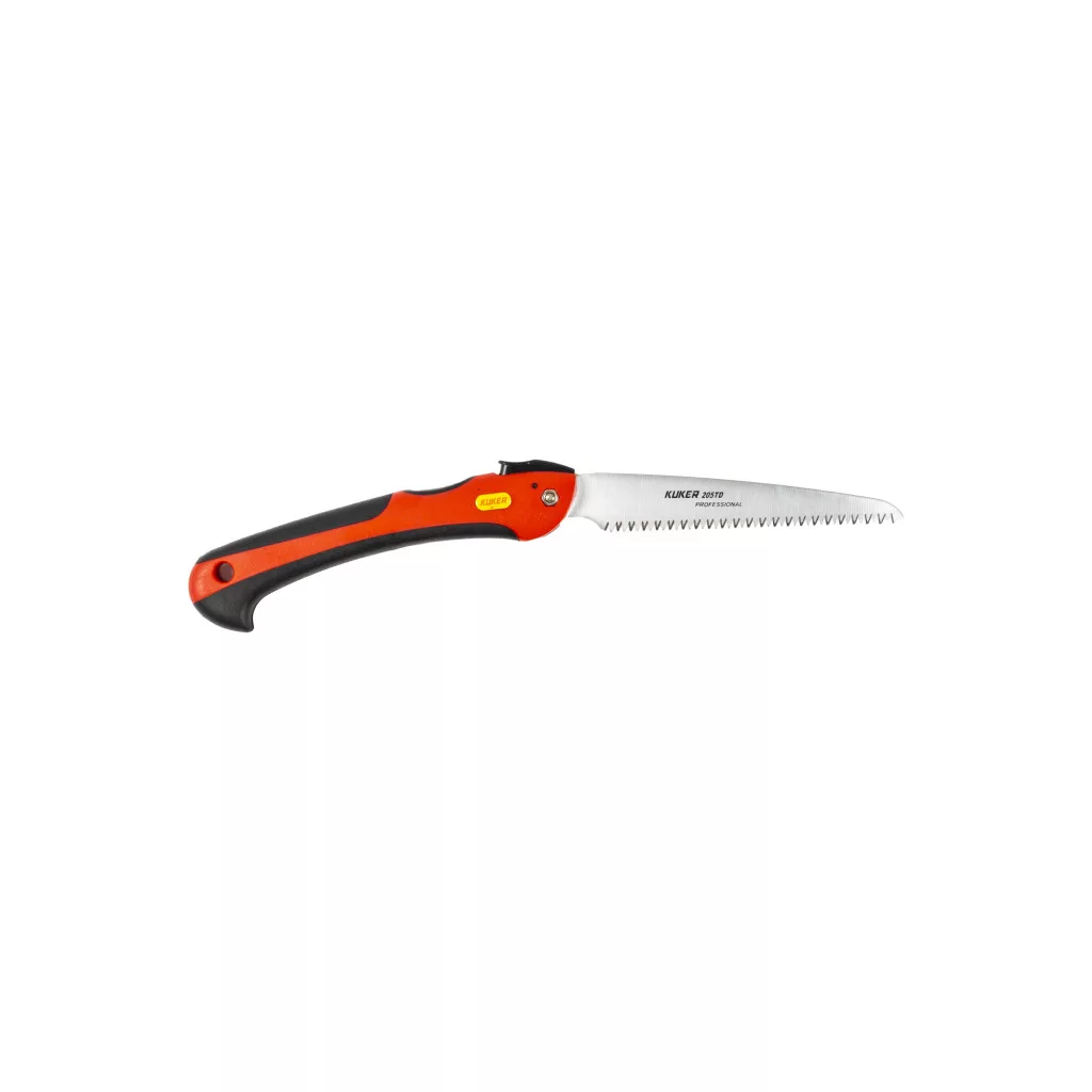 Features of the Kuker 205TD Jigsaw: Folding saw with high resistance polypropylene handle, non-slip rubber inserts and straight blade. Blade length: 19 cm Weight: 235 gr