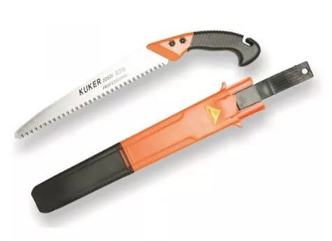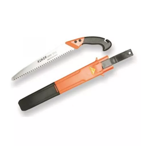 Features of the Hand Saw with Case Kuker 205D/240 24 cm: Saw with straight blade, aluminum handle, non-slip rubber grips and rugged case with belt attachment. Blade length: 27 cm