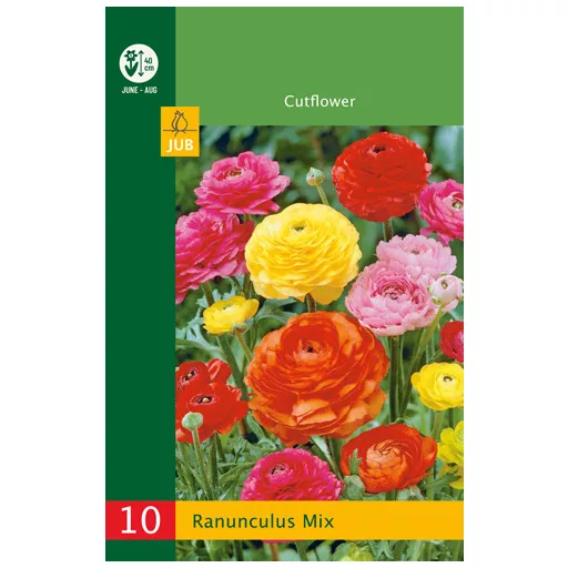 Ranunculus pastel mix will bring joy to your garden for months. The Ranunculus pastel mixture blooms all summer long, from July until the first frost. The Ranunculus grows to a height of about 30-40 cm. Excellent for planting in the border.