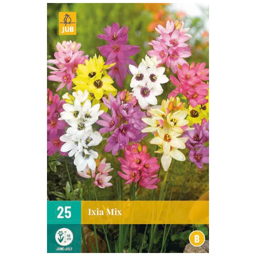Ixia mix is a cheerful summer flower. Ixia can be planted in borders or pots on the terrace or balcony. The flowers close daily and grow larger each day. They attract butterflies and bees. Ixia also looks great in a vase!