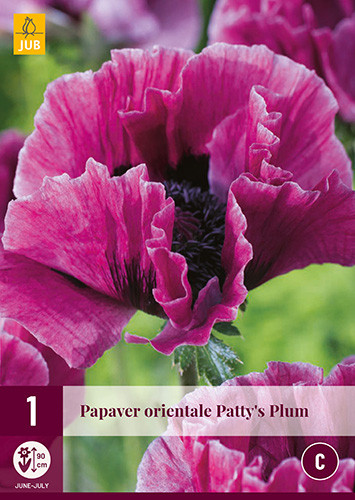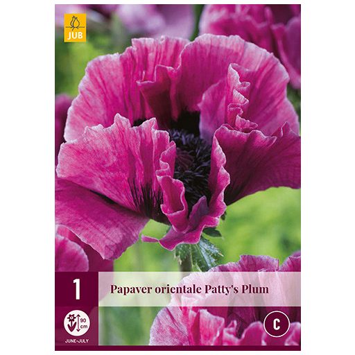 Poppy Pattys Plum is an affordable annual that combines beautifully in perennial border beds thanks to its dark purple color. Poppies thrive best in sandy or light clay soil. The best place is sheltered from the wind due to its thin petals. After flowering the flowers form seed pods, these are best removed to allow the poppies to flower again.
