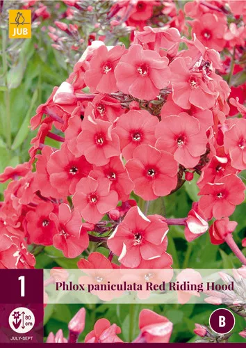 Phlox paniculata Red Riding Hood is a beautiful selection for the green and white flower garden. The flowers are twisted in the bud, divided into five petals and a hole in the center. The flowers exude a sophisticated fragrance and are attractive to butterflies. Phlox paniculata Red Riding Hood is a perennial plant that grows best in the open.