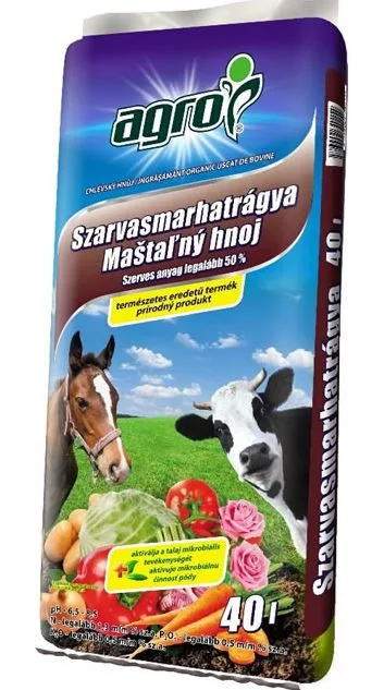 AGRO Cattle Manure is the ideal choice for organic farming. After application, microbial activities in the soil will start. Thanks to its content of basic nutrients, it increases the humus ratio and thus the fertility of the soil, which is very important at the beginning of the following season.