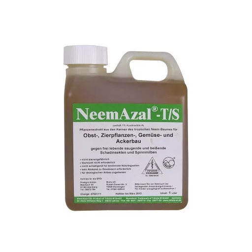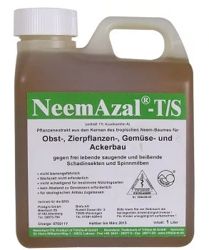 Neem Azal® T/S is a biological insecticide with a complex mode of action, which isIt is a biological control agent with a complex biological composition that can be used against sucking, chewing and burrowing pests. It is an insecticidal, insectivorous and insect-sucking insect that can be used as a pesticide, insect control and insect pest control.It enters the pest's body by blocking feeding, inhibiting chitin synthesis and inhibiting reproduction.Its complex mechanism of action and its mode of action, which differs from that of conventional insecticides, make it an excellent resistance-breaking properties, making it an excellent fit for conventional control programmes.It is a deep-acting formulation that is absorbed into the leaf plate and thusIt is also effective against hidden and difficult to control pests such as leafminers. It can also be used to successfully control the powdery mildew population that sucks on leaf threads and is responsible for the spread of several viral diseases. It has low environmental persistence.