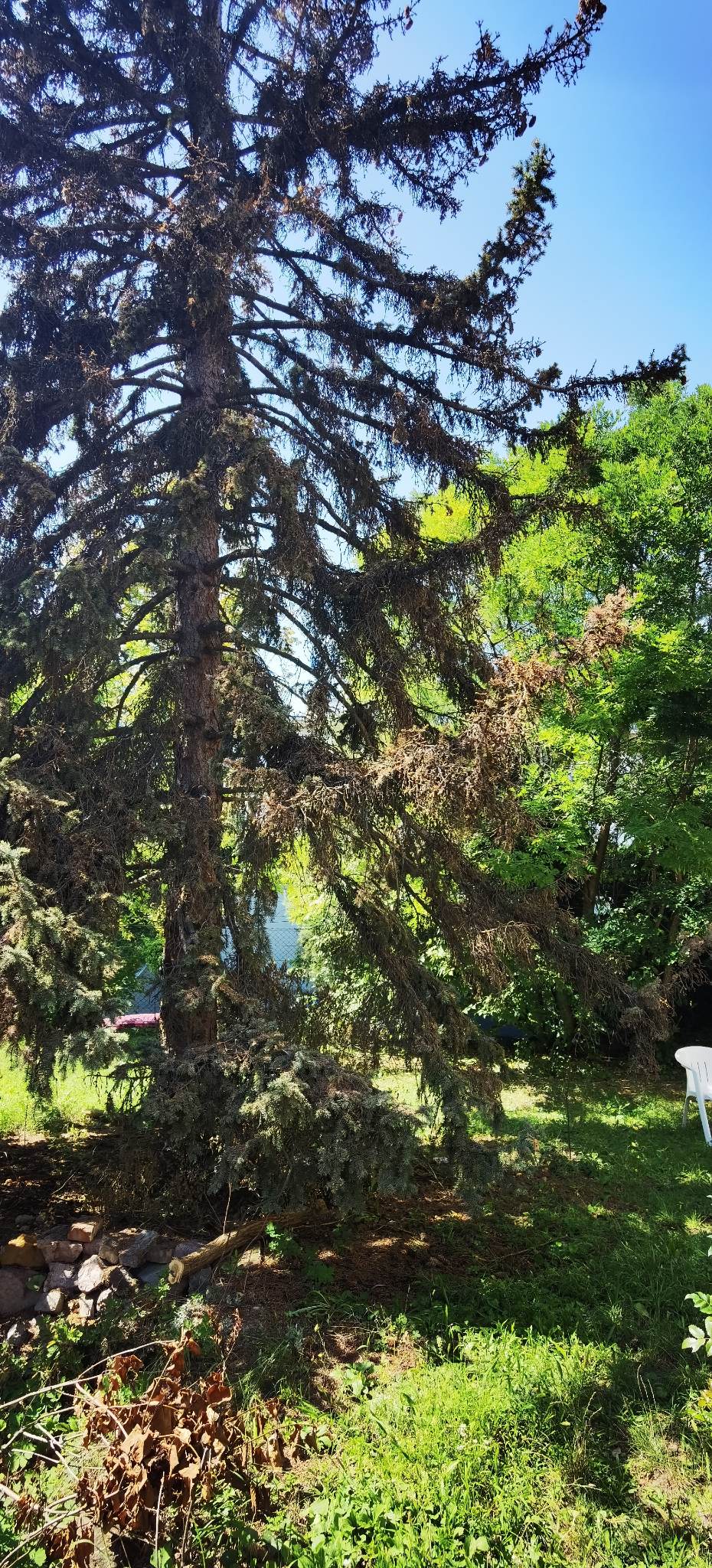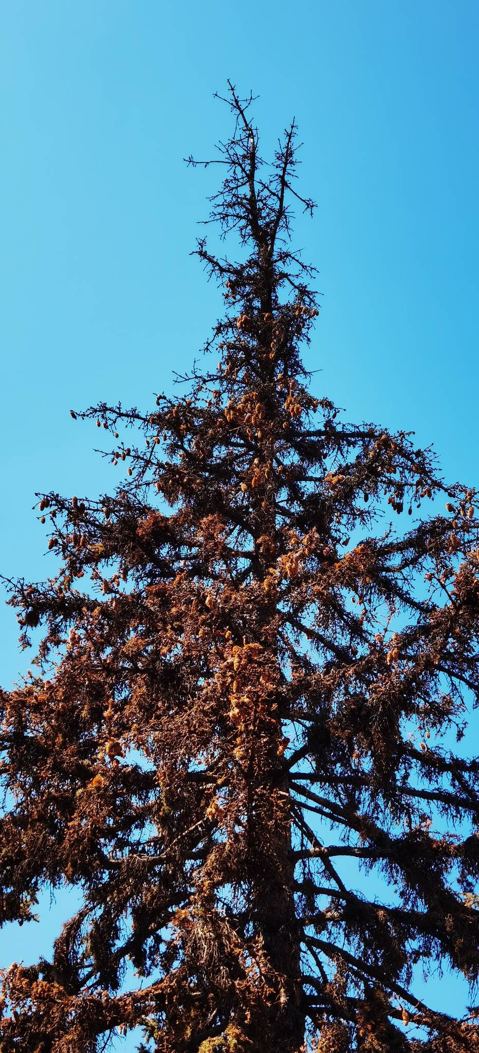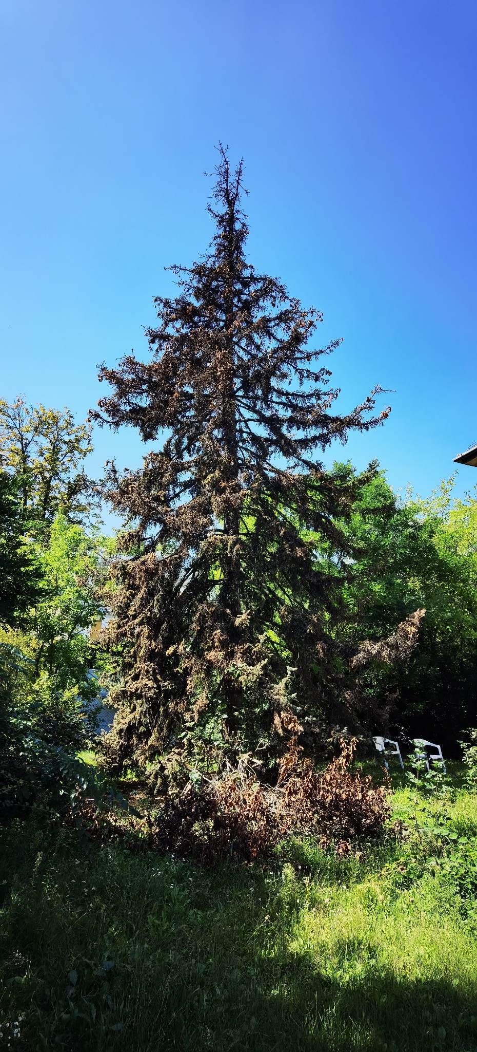 Fenyő kiszáradása, képek a tavaly óta beteg, kiszáradó fáról.