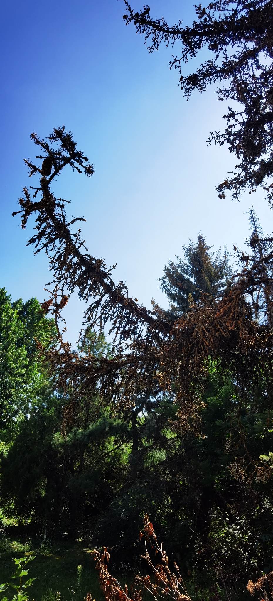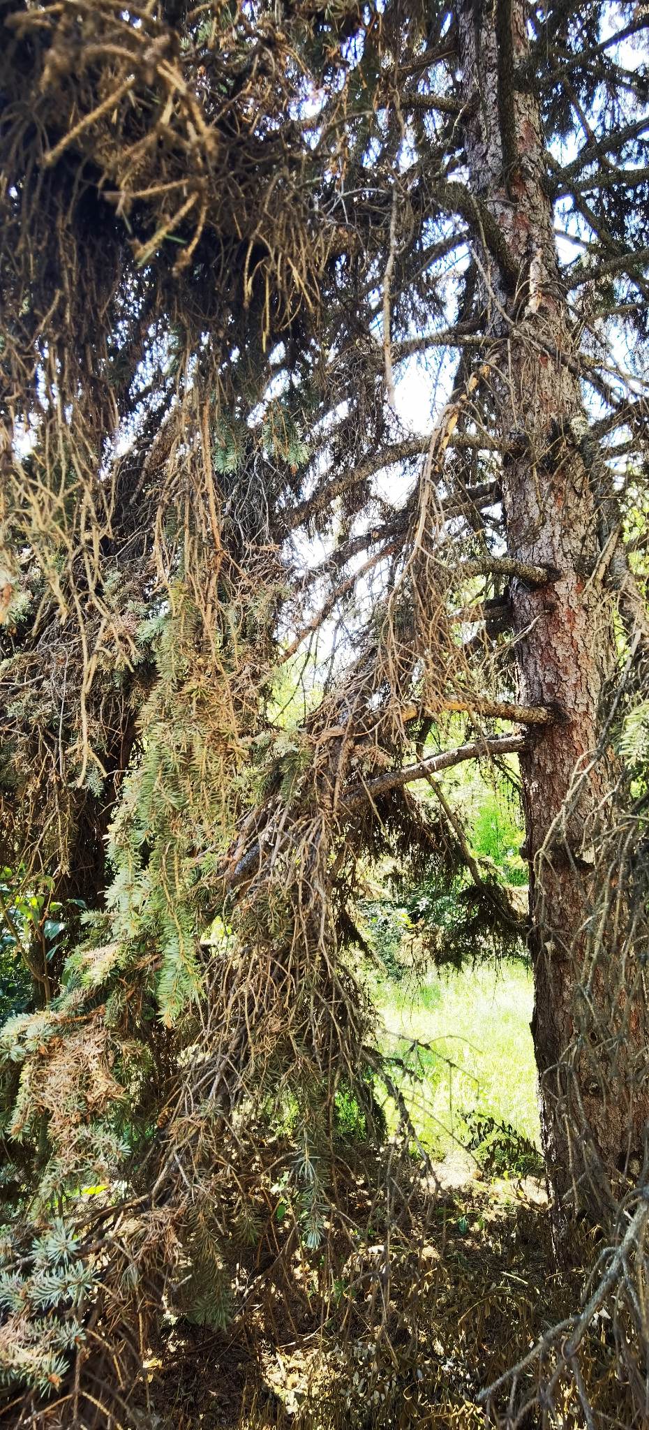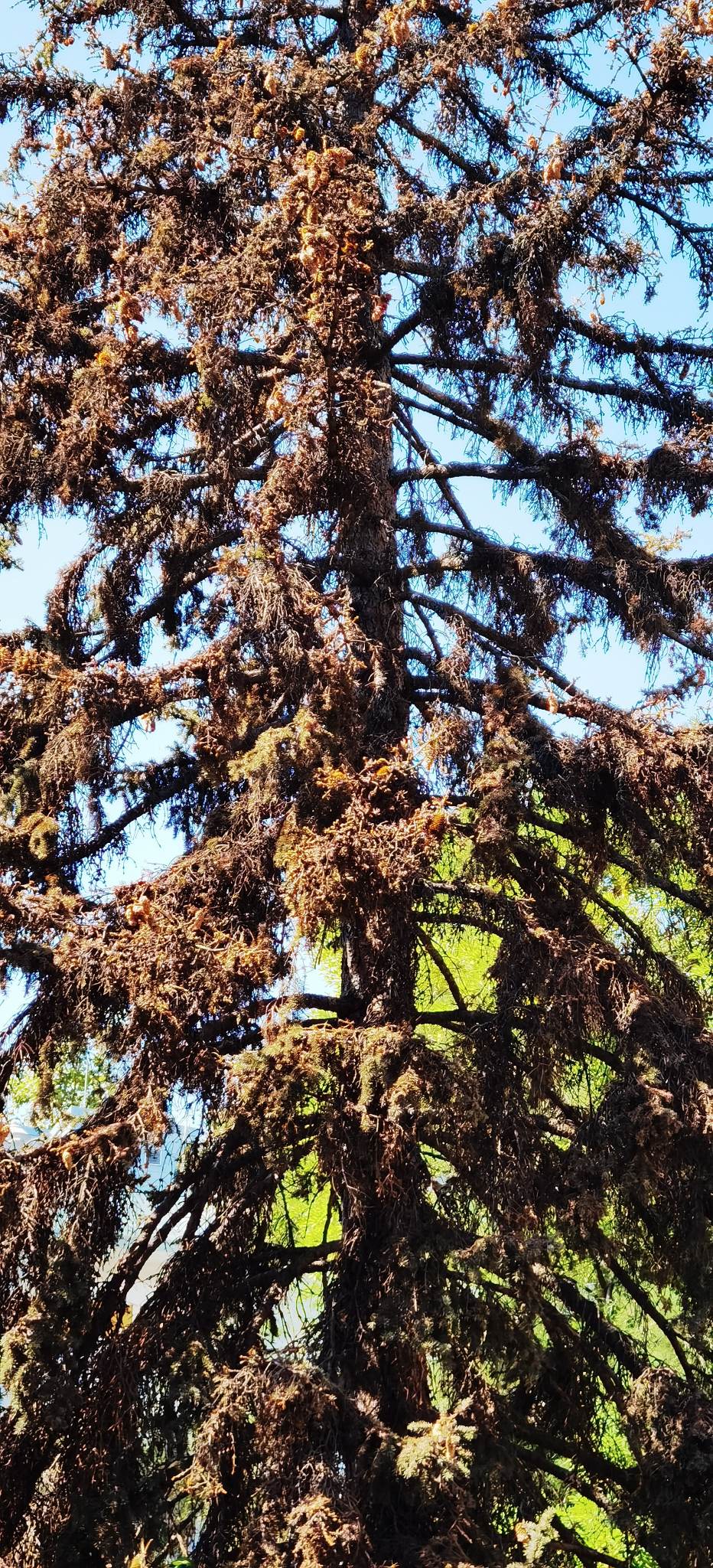 Fenyő kiszáradása, képek a tavaly óta beteg, kiszáradó fáról.