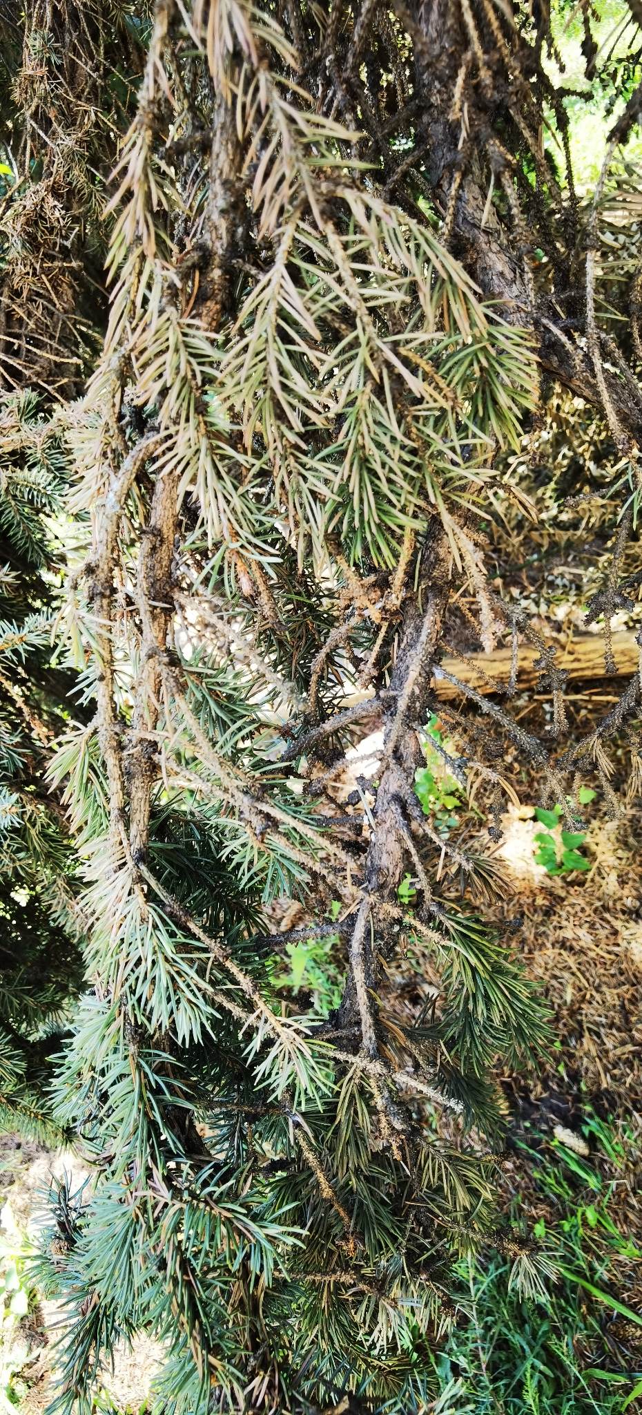 Fenyő kiszáradás képek a második tavaly óta beteg fáról.