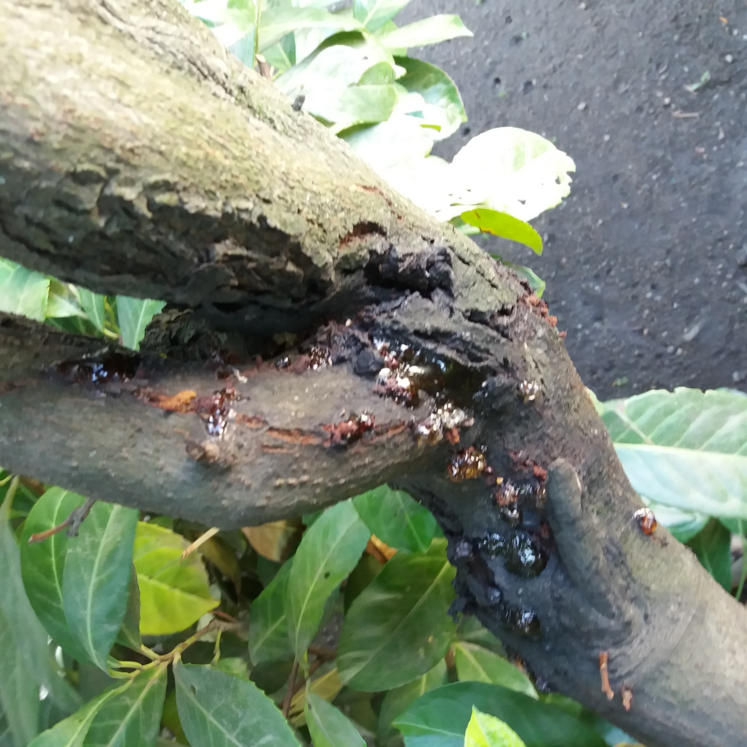 A mézgásodás élettani rendellenességet is jelez, nem csak betegséget. Itt azonban úgy látom, hogy valamilyen kéregsérülés, esetleg kéregrák van kialakulóban. Első körben a mézgát szedje le a növényről, és kenje be a sérült ágrészeket Champion WG porból kevert sűrű péppel. A növény kondícióját javítani kell: lazítsa fel a talajt körülötte, kapjon tartós hatású örökzöldekhez javasolt műtrágyát, illetve elegendő vizet is. A kivételesen hosszú téli-kora tavaszi szárazság megviselte ezeket a növényeket. Ha a sérült ágon nem fejlődnek megfelelően a levelek, akkor az ágat le kell vágni, és a gombaölős kezelést ismét elvégezni a seben.