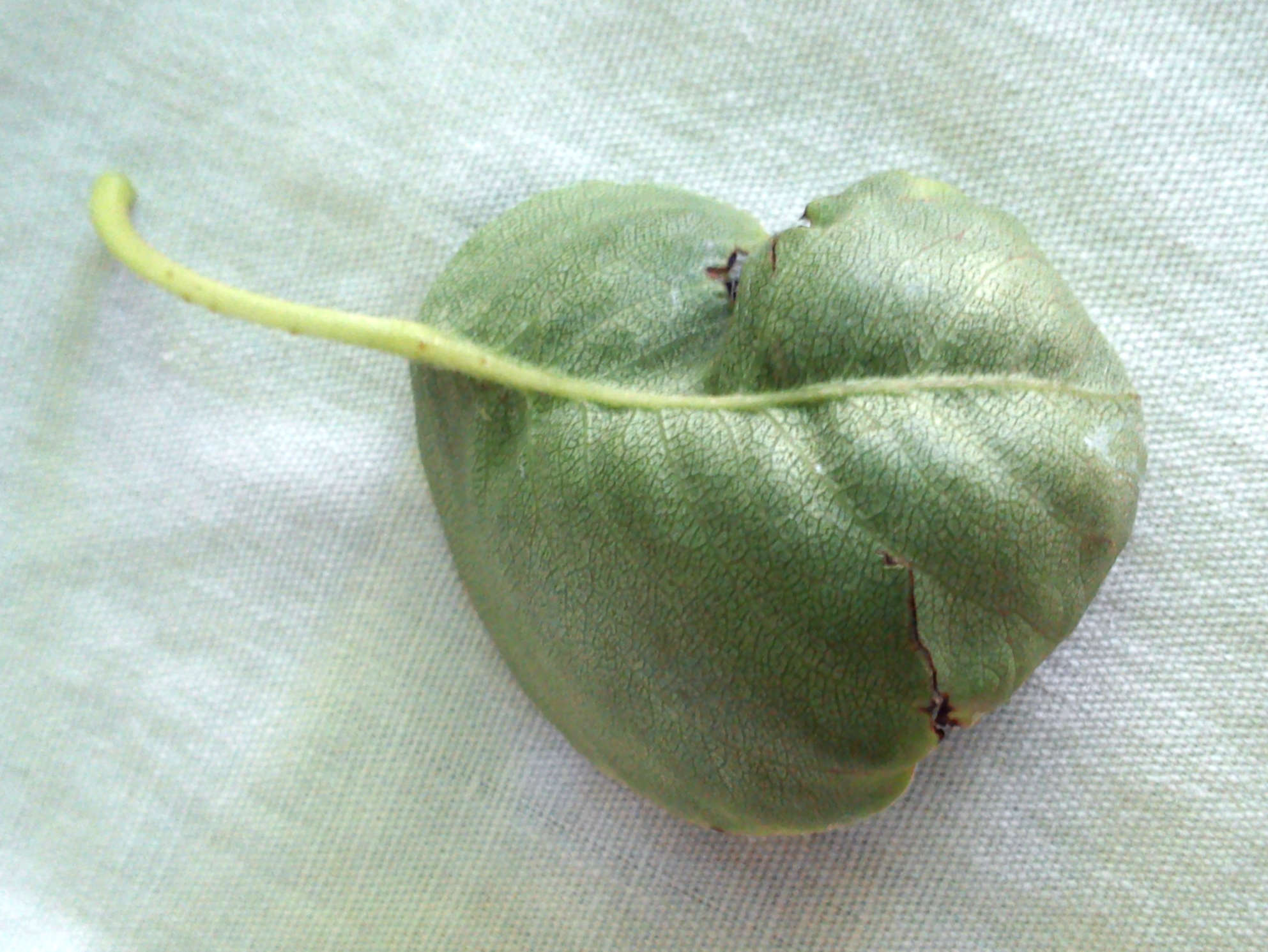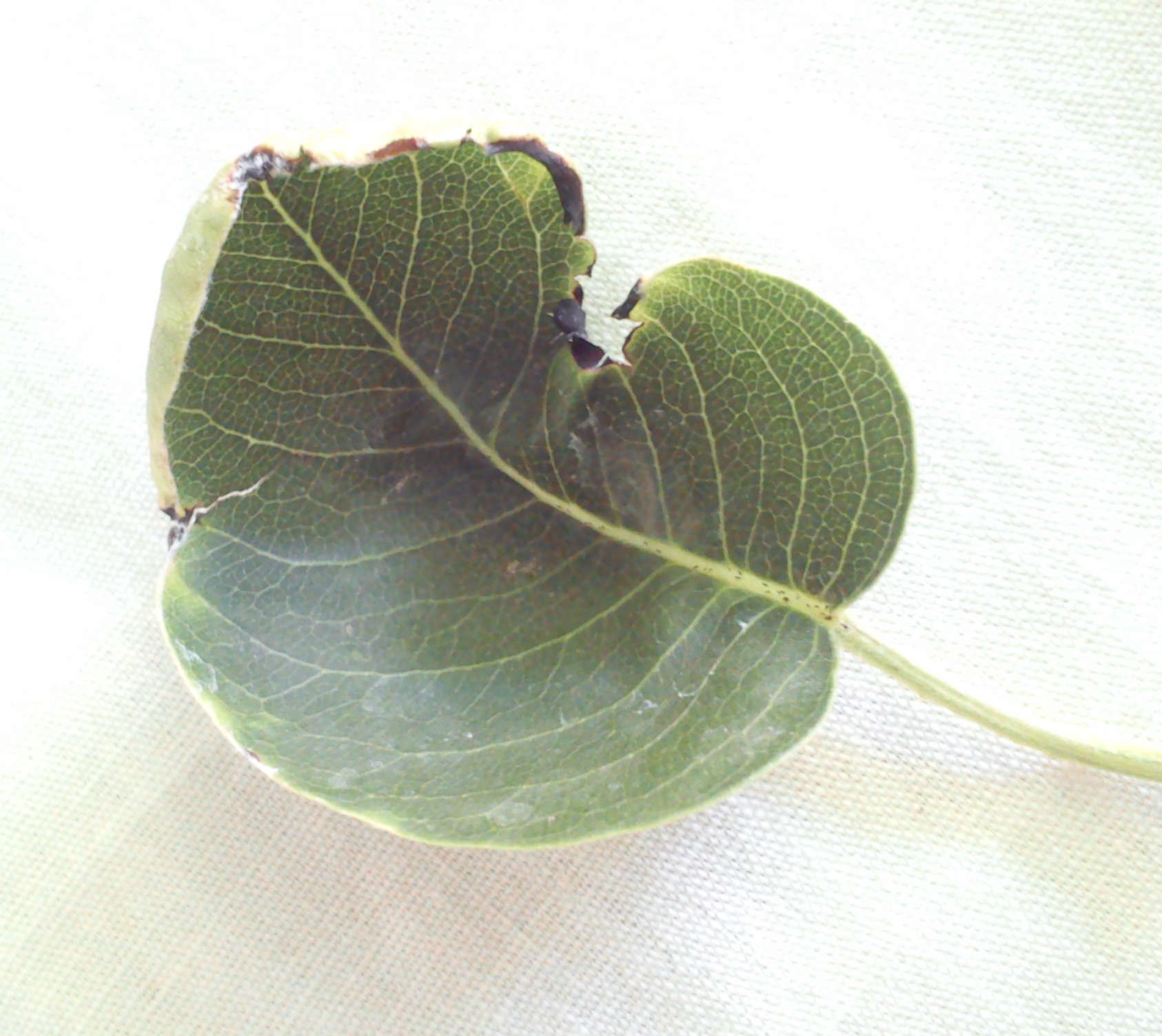 Nem látok rajta más elváltozást, csak azt, hogy húzódik össze -mint a parizer, ha sütik, és nem vagdalják be- és a levélszélek felkunkorodnak, kifakulnak.