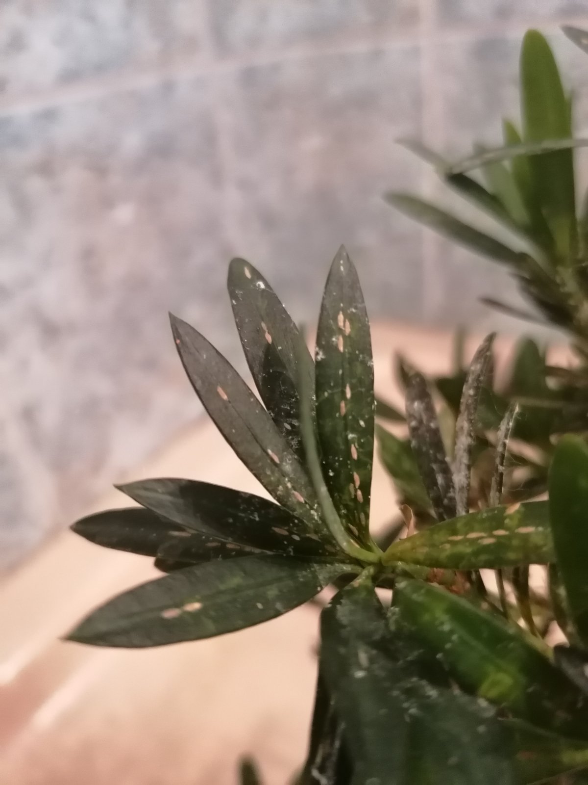 Az előző kérdésénél atkára gyanakodtam, de ez inkább pajzstetű. A legjobb, ha tömény szappanos vízzel áttörli a leveleket. Mospilan-nal történő permetezés és/vagy beöntözés (kizárólag a lakáson kívül, szabad térben) hatékonyabb.