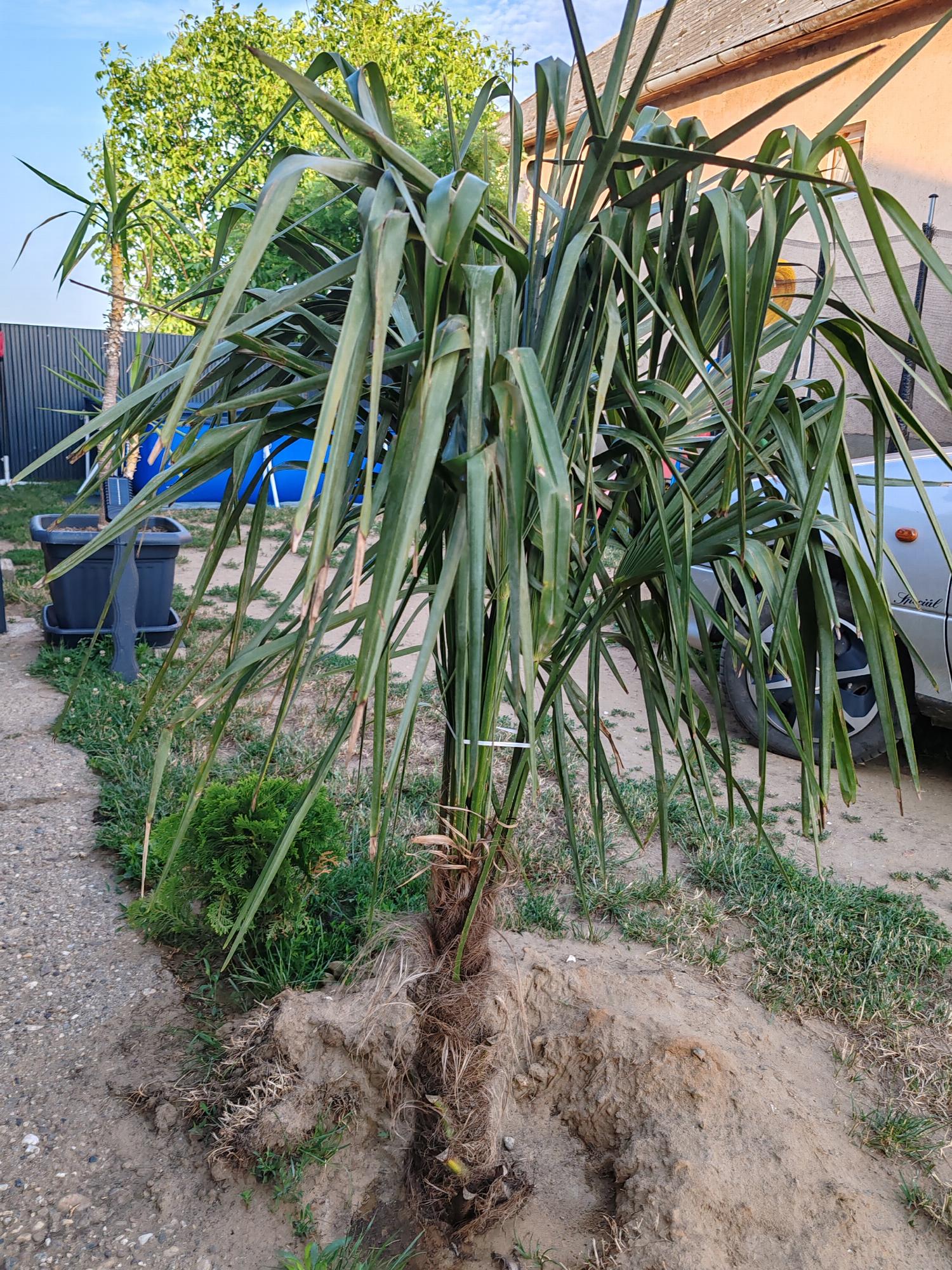 Kedves Katalin... Két hete lett kiűltetve. Kínai kenderpálma. Mi lehet a baj ? Mit tegyek ? Elég fura....élettelennek tűnik🫤 muszáj volt összefogni.,félő hogy lassan a szél is eltördeli. Köszönöm szépen a segítséget előre is. Öntözés este ...minden nap...illetve hetente tápoldatozva is van.