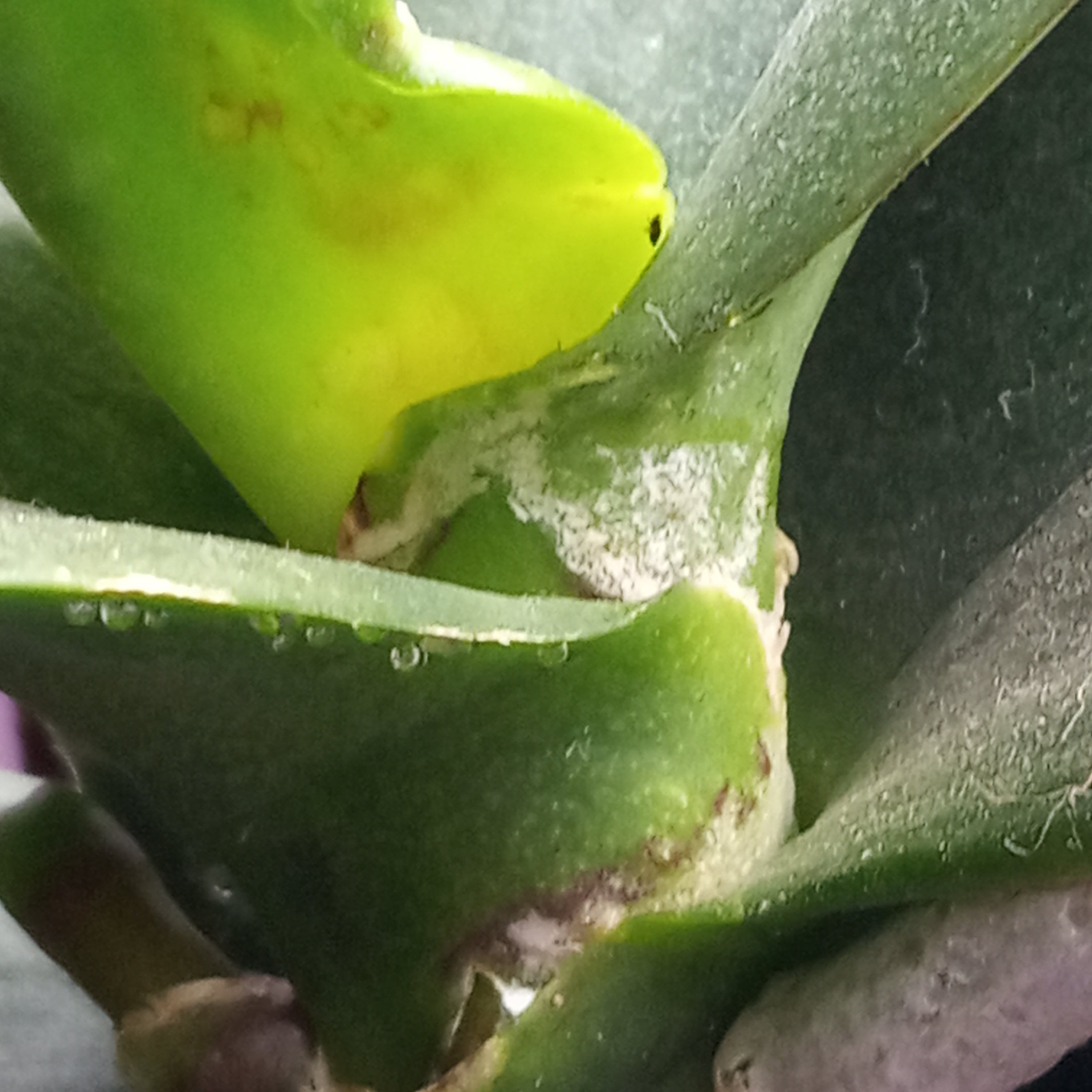Lemostam a virágaimat, készítettem újabb fotókat. Láttam valami fehér pókháló szerűséget is, illetve fehér plakkokat is.