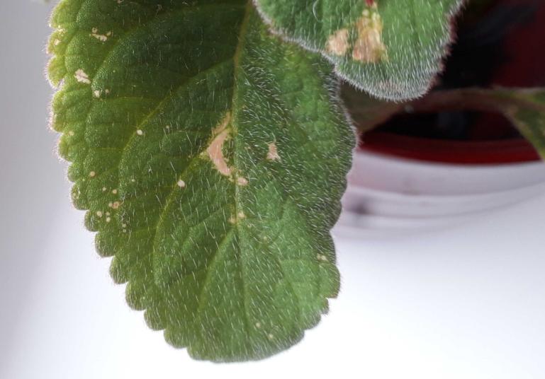 Tisztelt Szakértő! Peremvirágunk levelein a képen látható foltok jelentek meg. Tudna segíteni abban, mi okozhatja ezeket? A virág az ablakpárkányon áll, világos helyen. Kétnaponta átáztatva locsoljuk. Időként tápoldatot is kap. Előre is köszönöm a segítségét! Üdvözlettel, Financsek Zsuzsanna