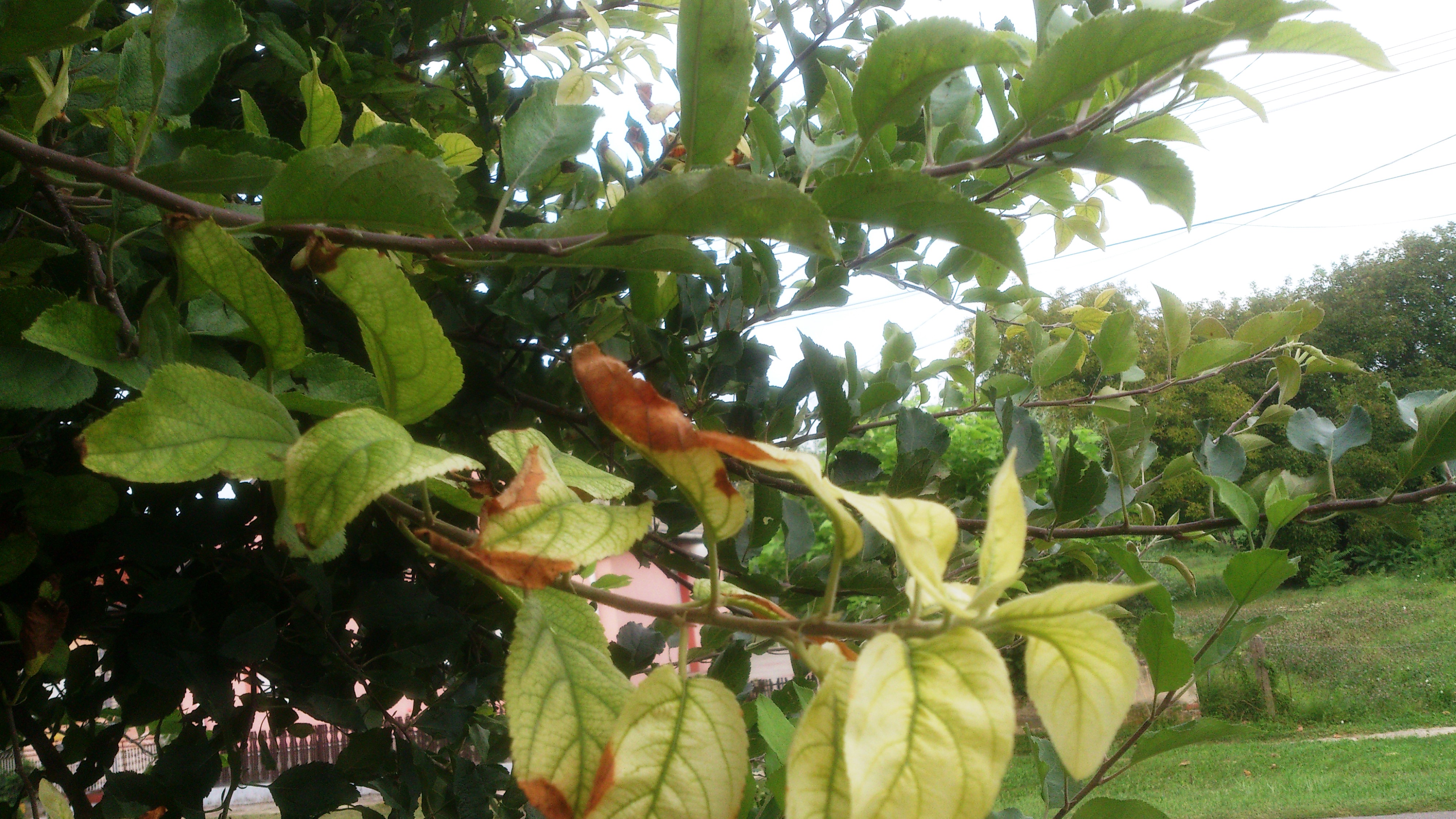 Az almafám levelei a mellékelt fotón láthatóan sárgulnak majd barnulnak , végül lehullanak . A fa fajtáját nem ismerem csak annyit , hogy kb. 1980 óta van a kertemben , téli alma a gyümölcs piros színű sárgával mosott felületű . Májusig tárolható , roppanó húsú savanykásan édes ízű . Az az érdekes , hogy a fának a déli oldalán jelentkezik ez a sárgulás , máshol haragos zöld a lombja . Permeteztem rézzel (bírja),Dithane M45-tel , Agriplannal, keserűsóval , de a Júl. felé újból megjelenik ez a betegség . Kérem segítő tanácsát , üdvözlettel Pintér J.