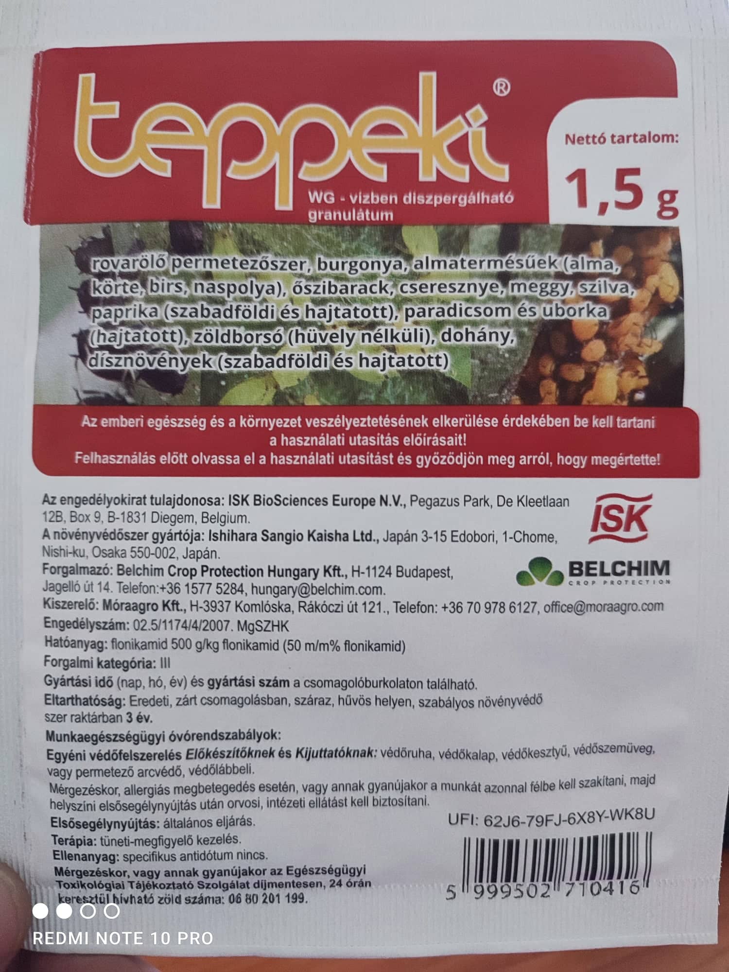 Az lenne a kérdésem,hogy permeteztünk ezzel a rovarölő permetező szerrel ,és lehetséges,hogy ráment a földieperre is .hány napot kell várni,hogy a földiepret lehessen szedni és fogyasztani.