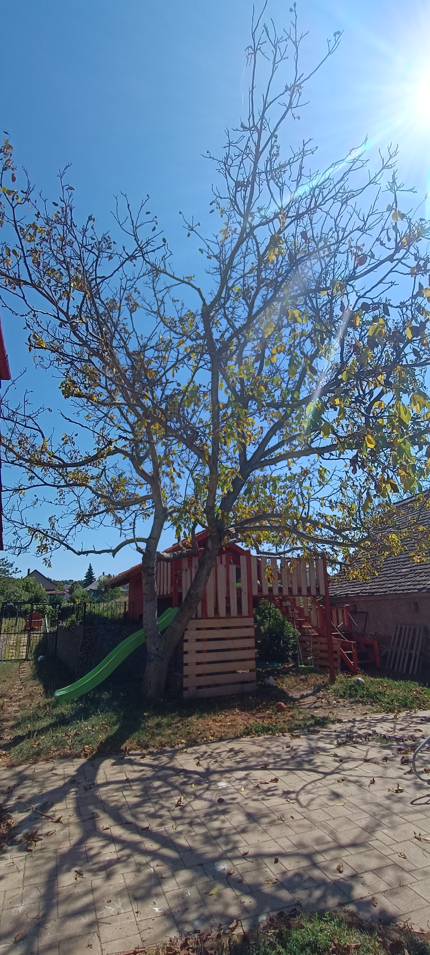 A fa kb. 15 éves, talajvíz nincs, lejtős terepen van a fa. A levelei is élénkzöldek, és sok termés van rajta.