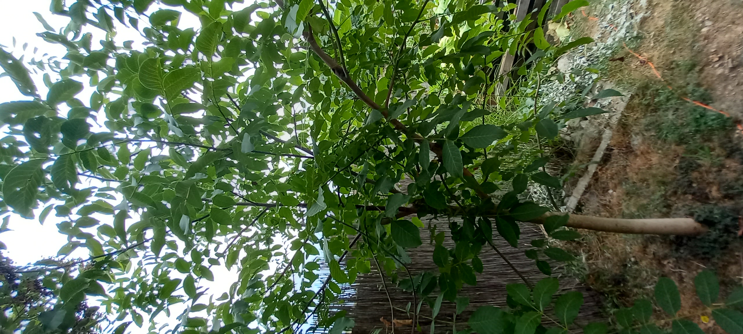 A fától délre 20m-re egy tavaly kiszáradt diófa van, északra 20m-re egy gyönyörű zöldellő.