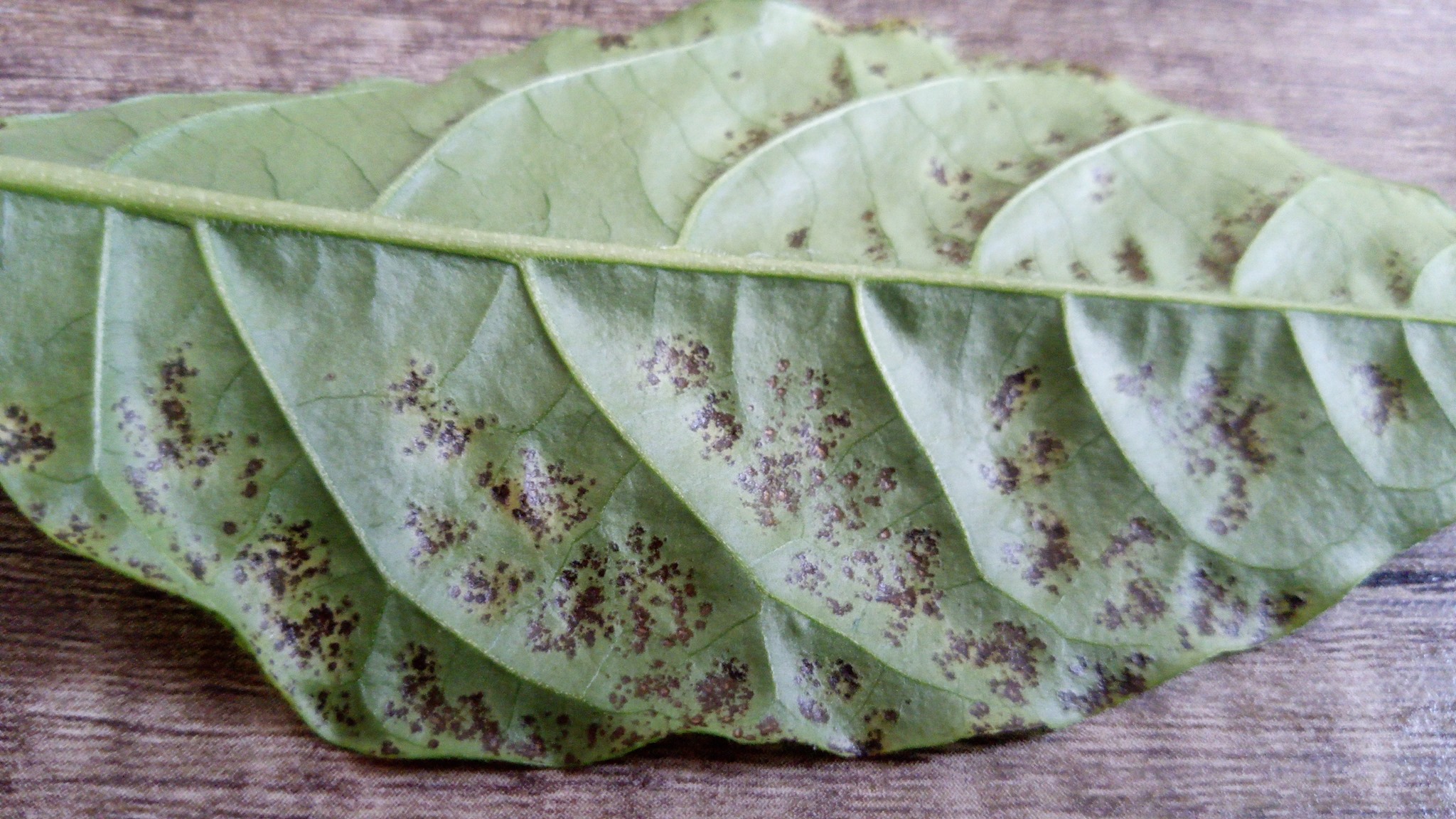 Az elszáradó leveleken foltokban ilyen kis fehér szivacs szerű valami van.