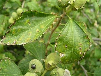 Mályvabokraimon az utóbbi időben a mellékelt képen látható szürkés-barnás levélfoltosságot fedeztem fel. A bokrok egyre nagyobb része érintett.