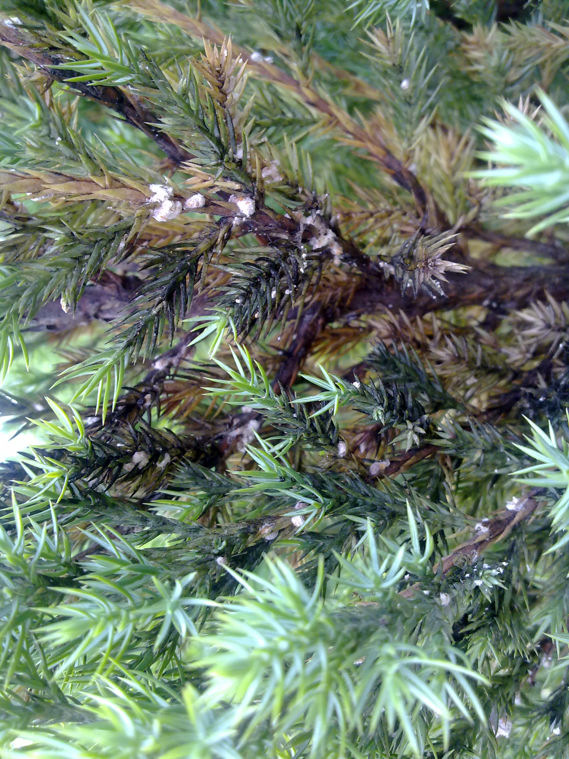 Azért kérdezem mert ilyen állagban található meg az örökzöldeken jelenleg. Gondoltam arra is, hogy egy nagy eső talán lemosná róla.